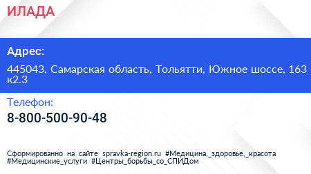 ИЛАДА по адресу 445043, Самарская область, Тольятти, Южное шоссе, 163 к2.3 в дальнейшем Организация, размещена в следующих категориях: