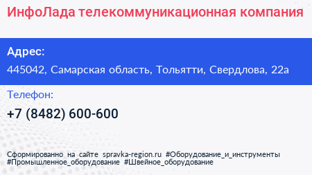 ИнфоЛада, телекоммуникационная компания по адресу 445042, Самарская область, Тольятти, Свердлова, 22а в дальнейшем Организация, размещена в следующих категориях: