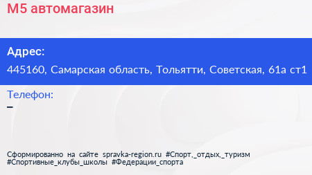 М5, автомагазин по адресу 445160, Самарская область, Тольятти, Советская, 61а ст1 в дальнейшем Организация, размещена в следующих категориях: