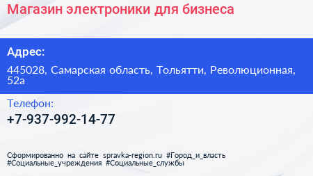 Магазин электроники для бизнеса по адресу 445028, Самарская область, Тольятти, Революционная, 52а в дальнейшем Организация, размещена в следующих категориях: