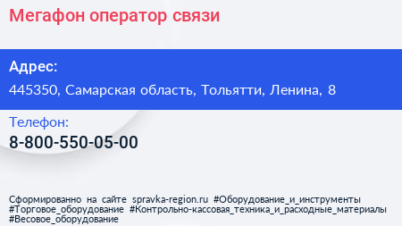 Мегафон, оператор связи по адресу 445350, Самарская область, Тольятти, Ленина, 8 в дальнейшем Организация, размещена в следующих категориях: