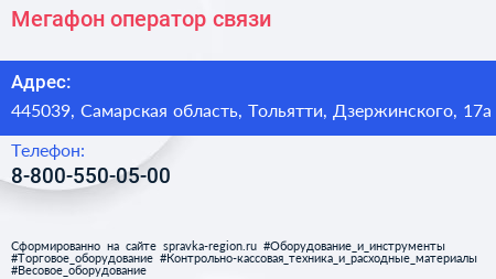 Мегафон, оператор связи по адресу 445039, Самарская область, Тольятти, Дзержинского, 17а в дальнейшем Организация, размещена в следующих категориях: