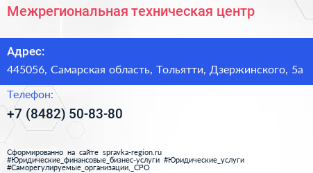Межрегиональная техническая центр по адресу 445056, Самарская область, Тольятти, Дзержинского, 5а в дальнейшем Организация, размещена в следующих категориях: