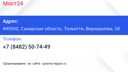 Мост24 по адресу 445042, Самарская область, Тольятти, Ворошилова, 18 в дальнейшем Организация, размещена в следующих категориях: