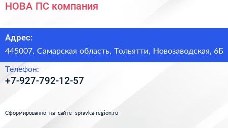 НОВА-ПС, компания по адресу 445007, Самарская область, Тольятти, Новозаводская, 6Б в дальнейшем Организация, размещена в следующих категориях: