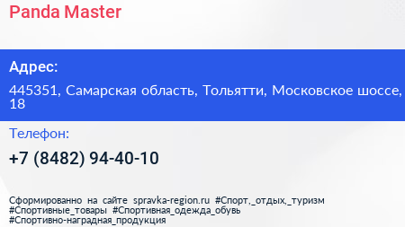 Panda Master по адресу 445351, Самарская область, Тольятти, Московское шоссе, 18 в дальнейшем Организация, размещена в следующих категориях: