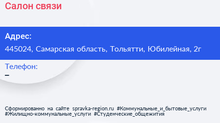 Салон связи по адресу 445024, Самарская область, Тольятти, Юбилейная, 2г в дальнейшем Организация, размещена в следующих категориях: