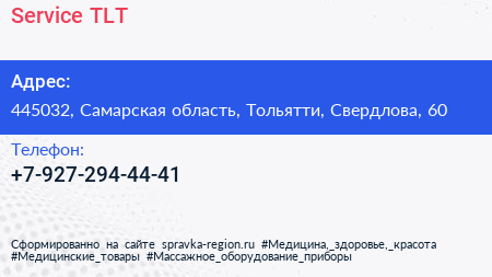 Service TLT по адресу 445032, Самарская область, Тольятти, Свердлова, 60 в дальнейшем Организация, размещена в следующих категориях: