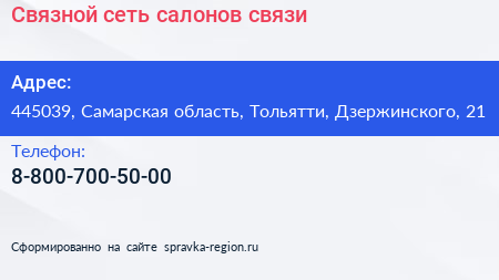 Связной, сеть салонов связи по адресу 445039, Самарская область, Тольятти, Дзержинского, 21 в дальнейшем Организация, размещена в следующих категориях: