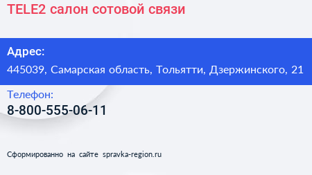 TELE2, салон сотовой связи по адресу 445039, Самарская область, Тольятти, Дзержинского, 21 в дальнейшем Организация, размещена в следующих категориях: