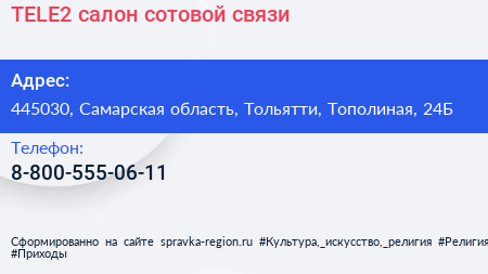 TELE2, салон сотовой связи по адресу 445030, Самарская область, Тольятти, Тополиная, 24Б в дальнейшем Организация, размещена в следующих категориях: