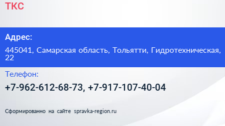 ТКС по адресу 445041, Самарская область, Тольятти, Гидротехническая, 22 в дальнейшем Организация, размещена в следующих категориях:
