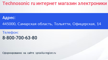 Technosonic.ru, интернет-магазин электроники по адресу 445000, Самарская область, Тольятти, Офицерская, 14 в дальнейшем Организация, размещена в следующих категориях: