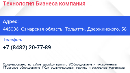 Технология Бизнеса, компания по адресу 445036, Самарская область, Тольятти, Дзержинского, 58 в дальнейшем Организация, размещена в следующих категориях: