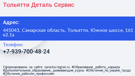 Тольятти Деталь Сервис по адресу 445043, Самарская область, Тольятти, Южное шоссе, 161 к2.1а в дальнейшем Организация, размещена в следующих категориях: