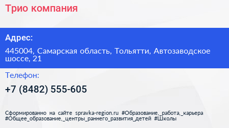 Трио, компания по адресу 445004, Самарская область, Тольятти, Автозаводское шоссе, 21 в дальнейшем Организация, размещена в следующих категориях: