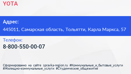 YOTA по адресу 445011, Самарская область, Тольятти, Карла Маркса, 57 в дальнейшем Организация, размещена в следующих категориях: