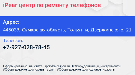 iPear, центр по ремонту телефонов по адресу 445039, Самарская область, Тольятти, Дзержинского, 21 в дальнейшем Организация, размещена в следующих категориях:
