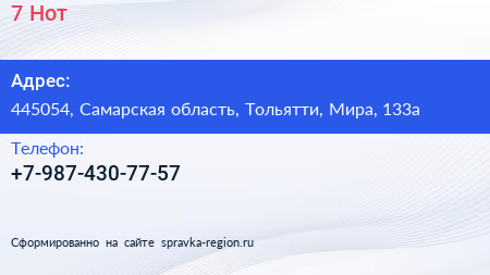 7 Нот по адресу 445054, Самарская область, Тольятти, Мира, 133а в дальнейшем Организация, размещена в следующих категориях: