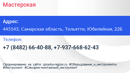 Мастерская по адресу 445143, Самарская область, Тольятти, Юбилейная, 22Б в дальнейшем Организация, размещена в следующих категориях: