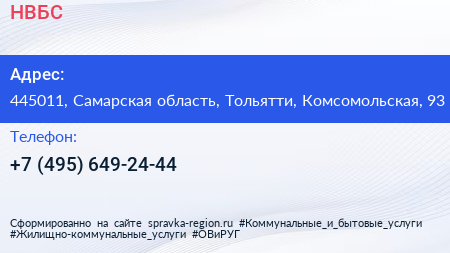 НВБС по адресу 445011, Самарская область, Тольятти, Комсомольская, 93 в дальнейшем Организация, размещена в следующих категориях: