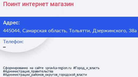 Поинт, интернет-магазин по адресу 445044, Самарская область, Тольятти, Дзержинского, 38а в дальнейшем Организация, размещена в следующих категориях: