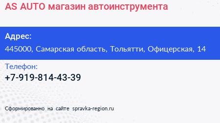 AS-AUTO, магазин автоинструмента по адресу 445000, Самарская область, Тольятти, Офицерская, 14 в дальнейшем Организация, размещена в следующих категориях: