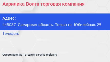 Акрилика-Волга, торговая компания по адресу 445037, Самарская область, Тольятти, Юбилейная, 29 в дальнейшем Организация, размещена в следующих категориях: