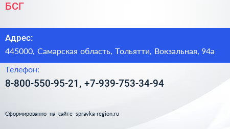 БСГ по адресу 445000, Самарская область, Тольятти, Вокзальная, 94а в дальнейшем Организация, размещена в следующих категориях: