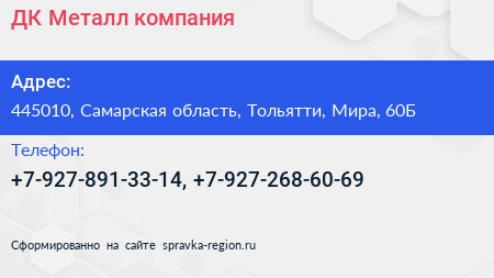 ДК Металл, компания по адресу 445010, Самарская область, Тольятти, Мира, 60Б в дальнейшем Организация, размещена в следующих категориях: