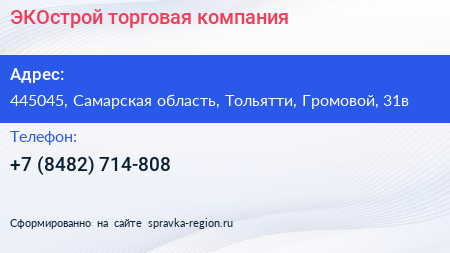ЭКОстрой, торговая компания по адресу 445045, Самарская область, Тольятти, Громовой, 31в в дальнейшем Организация, размещена в следующих категориях: