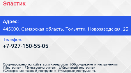 Эластик по адресу 445000, Самарская область, Тольятти, Новозаводская, 2Б в дальнейшем Организация, размещена в следующих категориях:
