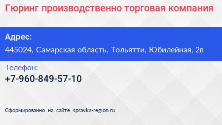 Гюринг, производственно-торговая компания по адресу 445024, Самарская область, Тольятти, Юбилейная, 2в в дальнейшем Организация, размещена в следующих категориях: