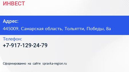 ИНВЕСТ по адресу 445009, Самарская область, Тольятти, Победы, 8а в дальнейшем Организация, размещена в следующих категориях: