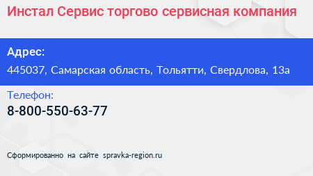 Инстал Сервис, торгово-сервисная компания по адресу 445037, Самарская область, Тольятти, Свердлова, 13а в дальнейшем Организация, размещена в следующих категориях: