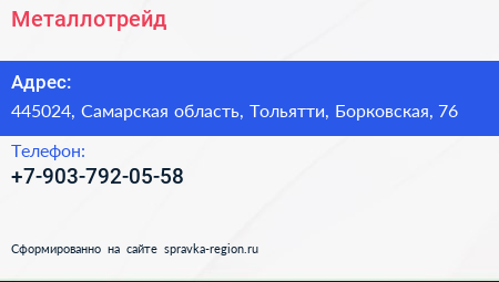 Металлотрейд по адресу 445024, Самарская область, Тольятти, Борковская, 76 в дальнейшем Организация, размещена в следующих категориях: