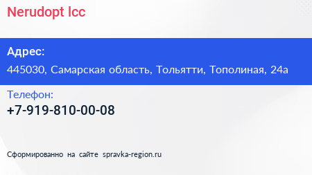 Nerudopt lcc по адресу 445030, Самарская область, Тольятти, Тополиная, 24а в дальнейшем Организация, размещена в следующих категориях: