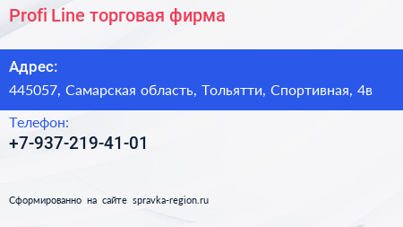 Profi Line, торговая фирма по адресу 445057, Самарская область, Тольятти, Спортивная, 4в в дальнейшем Организация, размещена в следующих категориях: