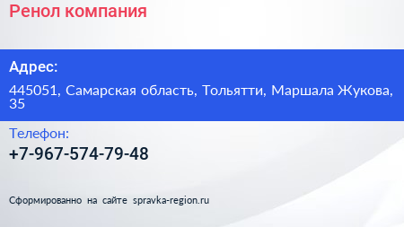 Ренол, компания по адресу 445051, Самарская область, Тольятти, Маршала Жукова, 35 в дальнейшем Организация, размещена в следующих категориях: