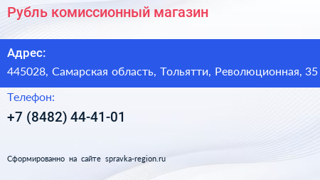 Рубль, комиссионный магазин по адресу 445028, Самарская область, Тольятти, Революционная, 35 в дальнейшем Организация, размещена в следующих категориях: