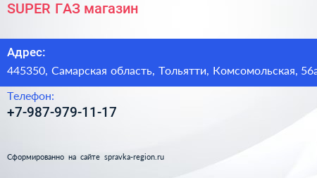 SUPER ГАЗ, магазин по адресу 445350, Самарская область, Тольятти, Комсомольская, 56а в дальнейшем Организация, размещена в следующих категориях: