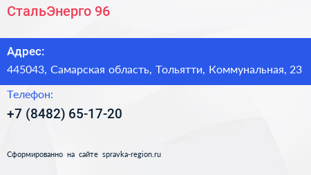 СтальЭнерго-96 по адресу 445043, Самарская область, Тольятти, Коммунальная, 23 в дальнейшем Организация, размещена в следующих категориях: