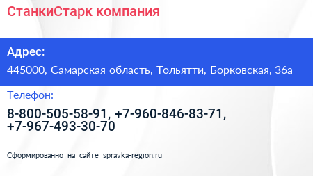 СтанкиСтарк, компания по адресу 445000, Самарская область, Тольятти, Борковская, 36а в дальнейшем Организация, размещена в следующих категориях: