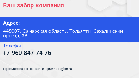 Ваш забор, компания по адресу 445007, Самарская область, Тольятти, Сахалинский проезд, 39 в дальнейшем Организация, размещена в следующих категориях: