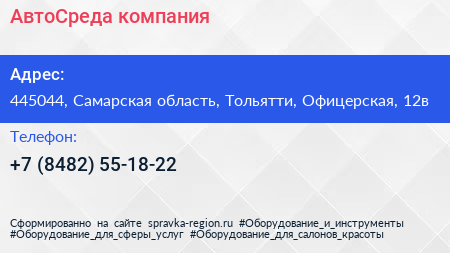 АвтоСреда, компания по адресу 445044, Самарская область, Тольятти, Офицерская, 12в в дальнейшем Организация, размещена в следующих категориях: