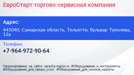 ЕвроСтарт, торгово-сервисная компания по адресу 445040, Самарская область, Тольятти, бульвар Туполева, 12а в дальнейшем Организация, размещена в следующих категориях: