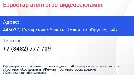 Евростар, агентство видеорекламы по адресу 445037, Самарская область, Тольятти, Фрунзе, 14Б в дальнейшем Организация, размещена в следующих категориях: