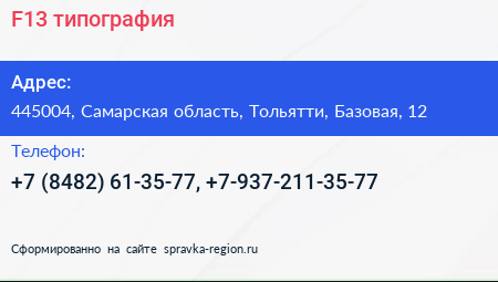 F13, типография по адресу 445004, Самарская область, Тольятти, Базовая, 12 в дальнейшем Организация, размещена в следующих категориях: