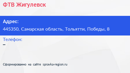 ФТВ-Жигулевск по адресу 445350, Самарская область, Тольятти, Победы, 8 в дальнейшем Организация, размещена в следующих категориях: