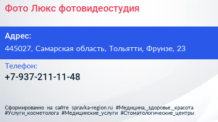 Фото Люкс, фотовидеостудия по адресу 445027, Самарская область, Тольятти, Фрунзе, 23 в дальнейшем Организация, размещена в следующих категориях: